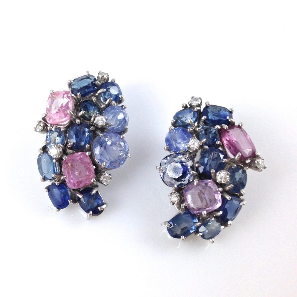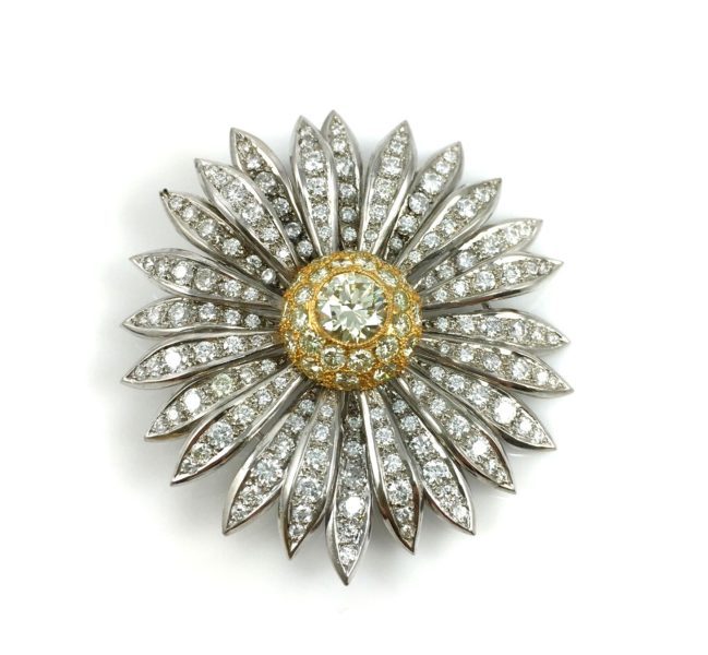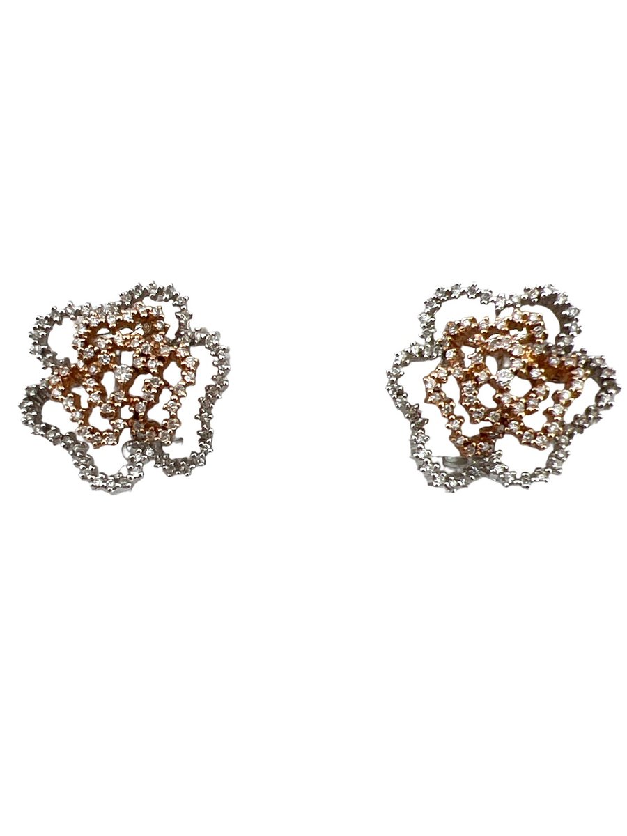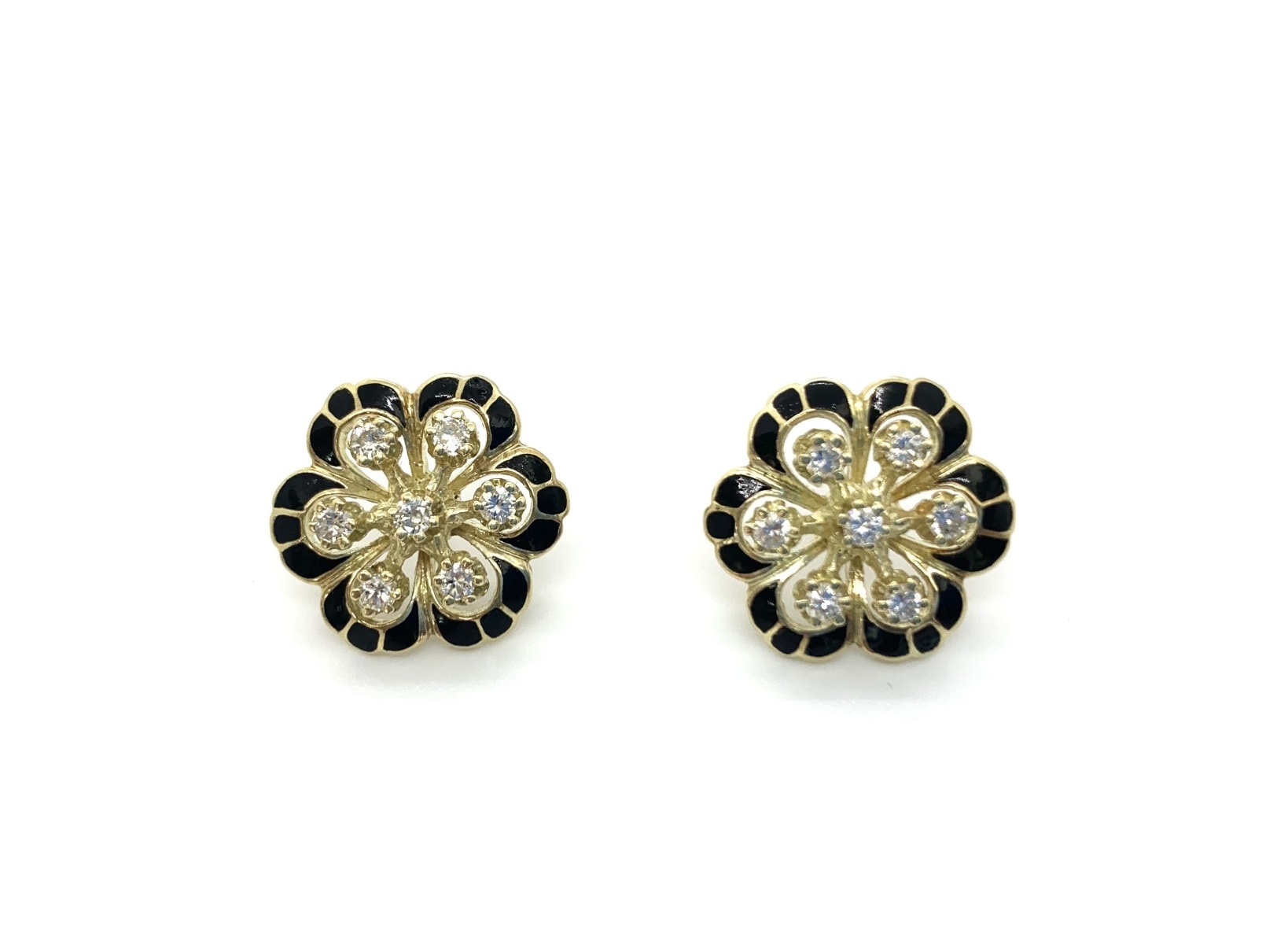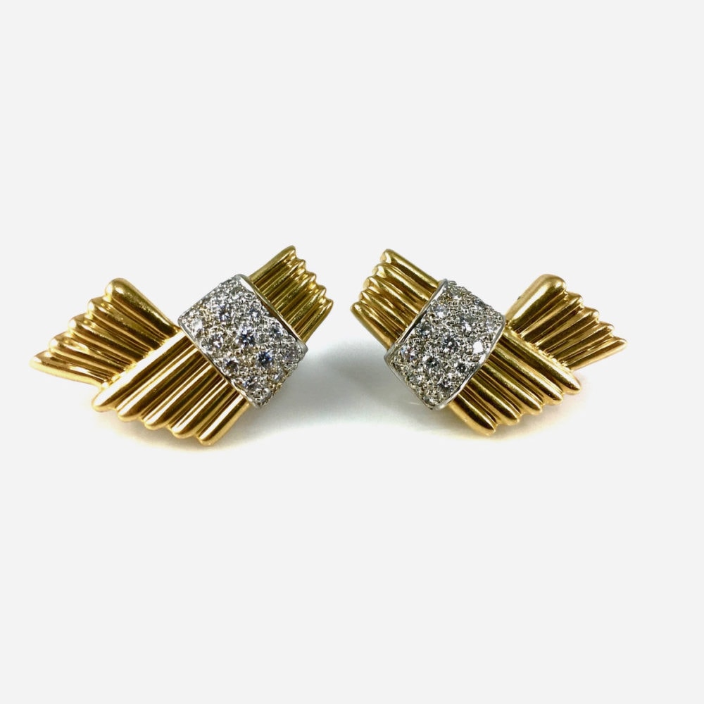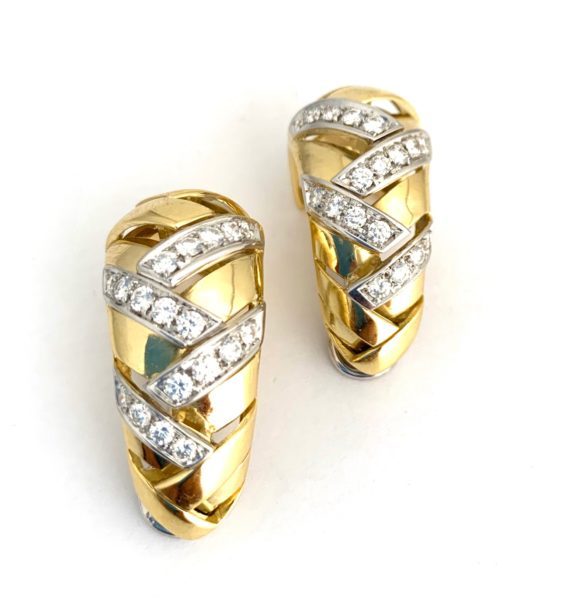 These earrings were originally bought in the late 1970s and feature 1.30 carats of round diamonds set in 14k yellow and white gold.