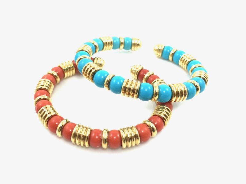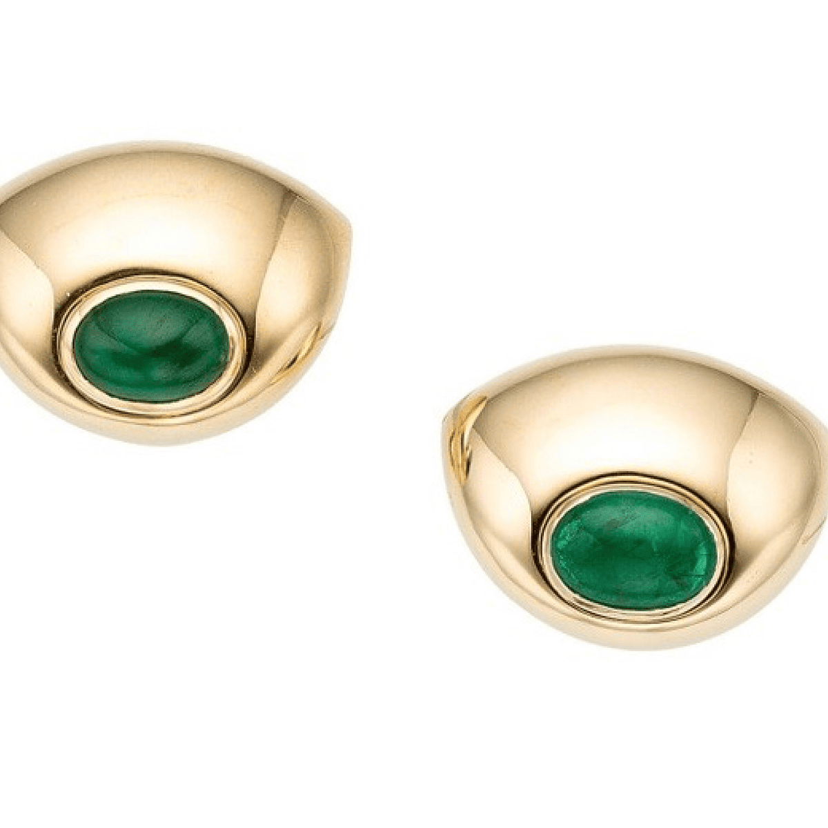 2 Cabochon Emeralds approximately 5 total carats in 18k gold by Poiray of Paris, France.