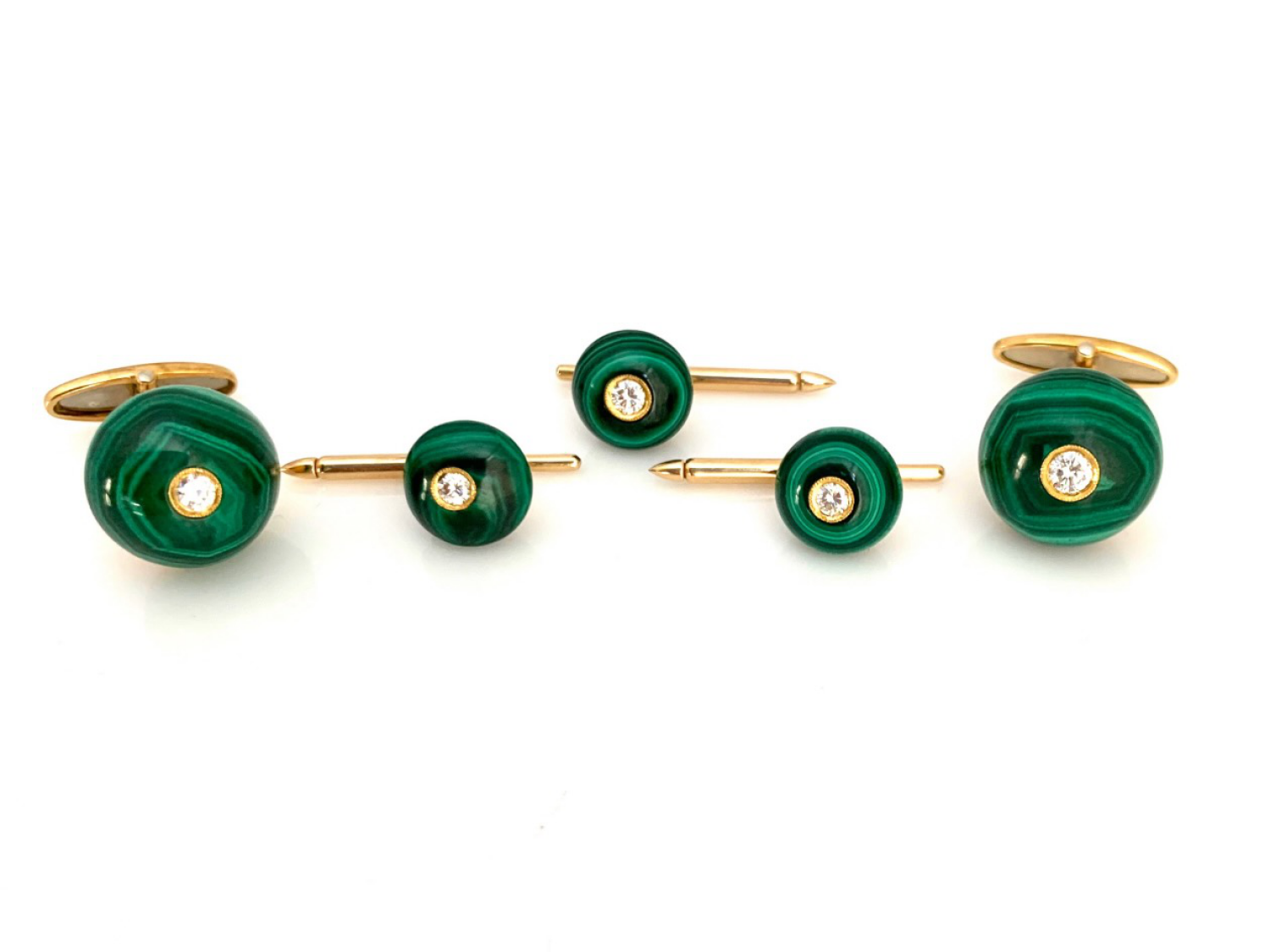 2 Cabochon emeralds measuring approximately 5.00 carats total weight , set in 18k gold, marked Poiray of Paris, France.
