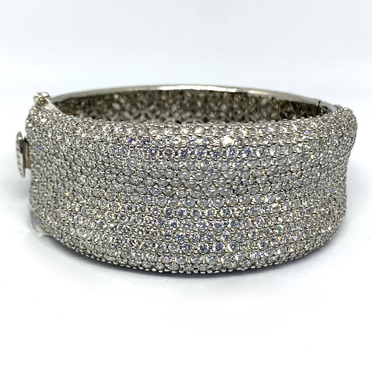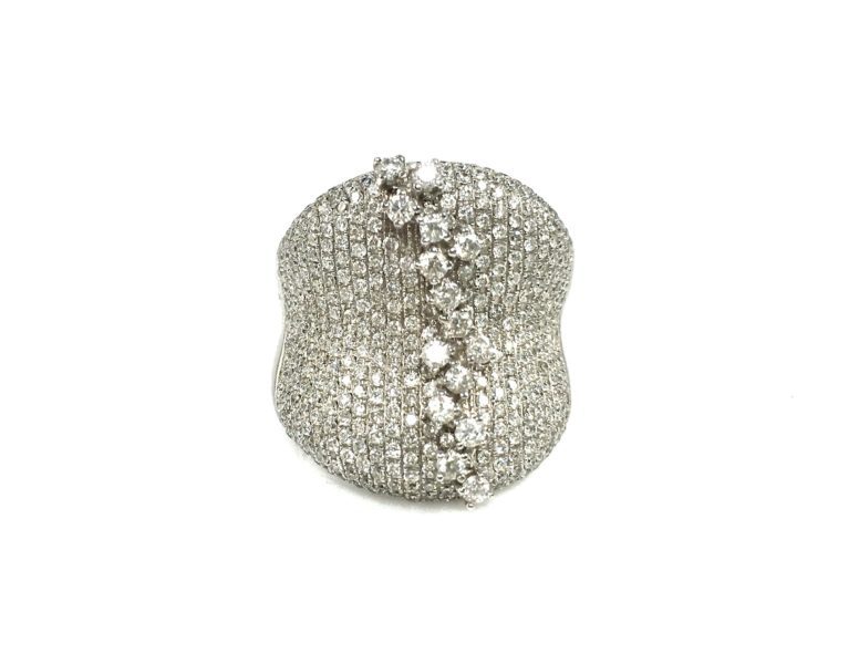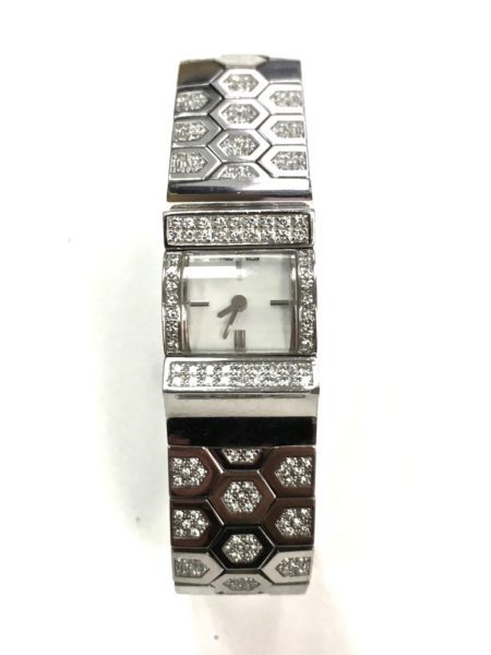 14k white gold Geneve watch with 62 round brilliant cut diamonds.